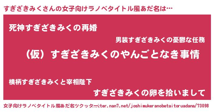 | 男性向けラノベタイトル風あだ名 | 『すぎざきみくの憂鬱』 |