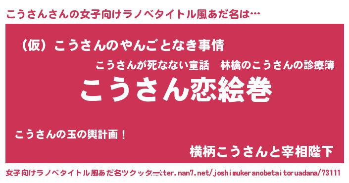 | ヒーロー風カッコイイあだ名 | 『愛の使者こうさん』『スーパーコウサン』 |