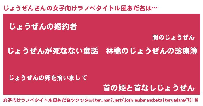 | 男性向けラノベタイトル風あだ名 | 『魔弾の王とじょうぜん』 |