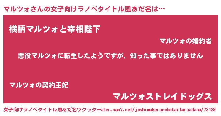 | 意味不明あだ名 | 『住所不定無職マルツォ(12歳)』 |