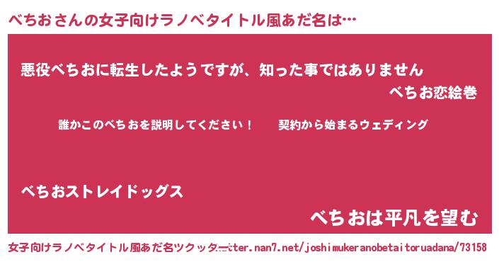 | 男性向けラノベタイトル風あだ名 | 『ベチオアートオンライン』 |