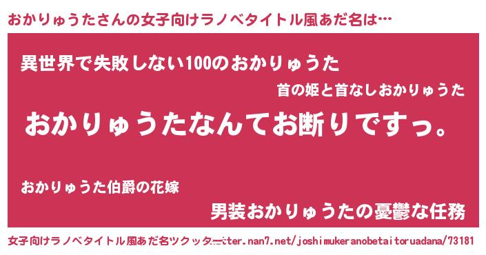 | 男性向けラノベタイトル風あだ名 | 『魔法科高校のおかりゅうた』 |