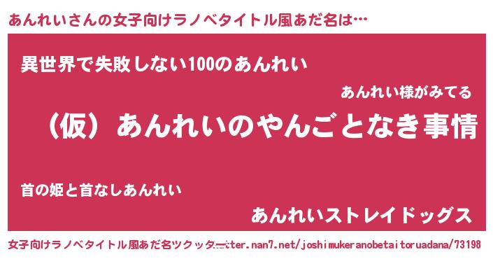 | 胡散臭い通販商品みたいなあだ名 | 『必ず成功する霊験あらたかなお札…その名も「あんれい」』 |