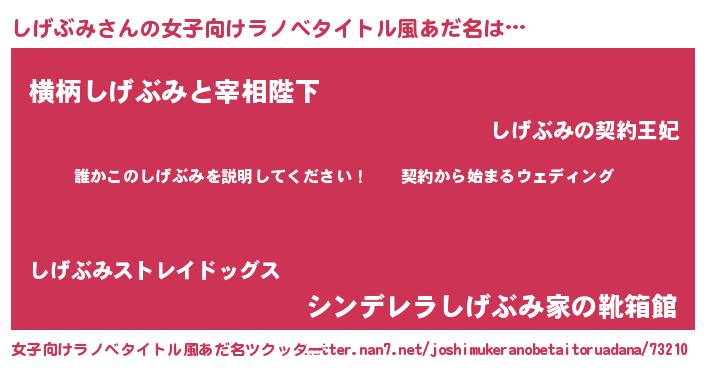 | 胡散臭い通販商品みたいなあだ名 | 『億万長者になれるブレスレット…その名も「しげぶみ」』 |