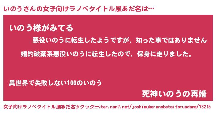| ヒーロー風カッコイイあだ名 | 『暗黒騎士イノ』『慈愛の使者いのう』 |