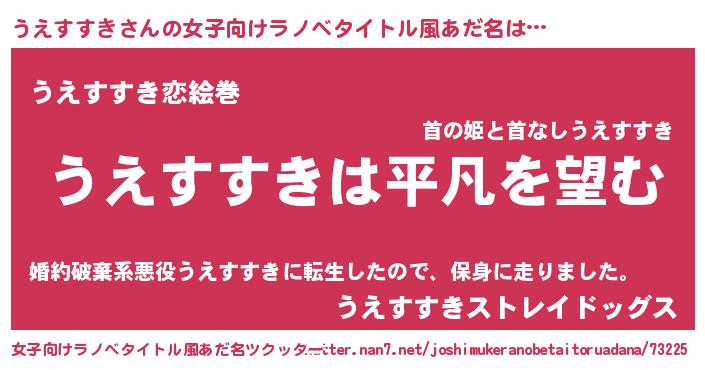 | 胡散臭い通販商品みたいなあだ名 | 『信頼と実績のネックレス…その名も「うえすすき」』 |
