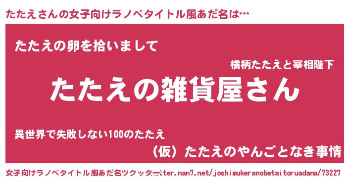 | 男性向けラノベタイトル風あだ名 | 『やはりたたえの青春ラブコメはまちがっている 』 |