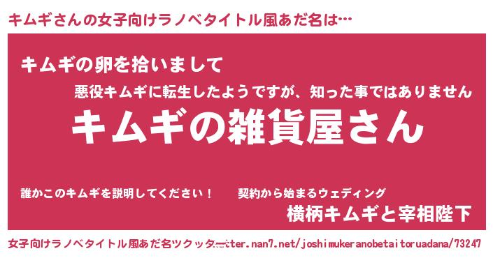 | 男性向けラノベタイトル風あだ名 | 『やはりキムギの青春ラブコメはまちがっている 』 |