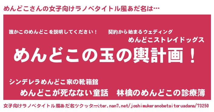 | 胡散臭い通販商品みたいなあだ名 | 『億万長者になれる霊験あらたかなお札…その名も「めんどこ」』 |