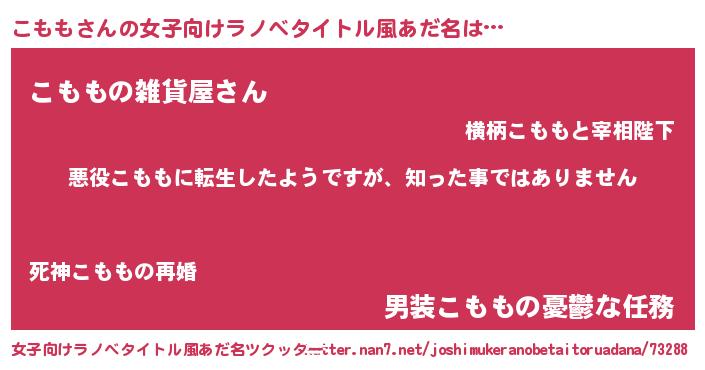 | ヒーロー風カッコイイあだ名 | 『仮面コモダー』『ウルトラこももマン』 |