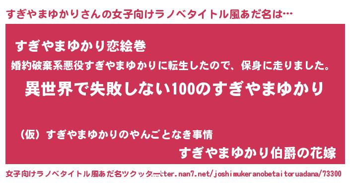 | 男性向けラノベタイトル風あだ名 | 『すぎやまゆかりという概念が存在しない退屈な世界 』 |