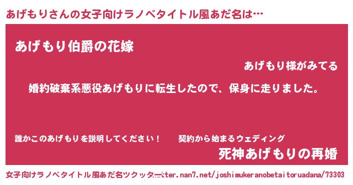 | 男性向けラノベタイトル風あだ名 | 『アゲモリスレイヤー』 |