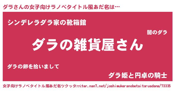 | 男性向けラノベタイトル風あだ名 | 『やはりダラの青春ラブコメはまちがっている 』 |