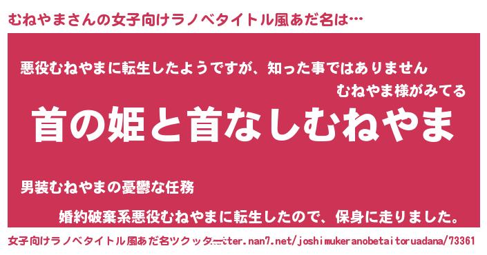 | ヒーロー風カッコイイあだ名 | 『仮面ムネダー』『天弓騎士ムネ』 |