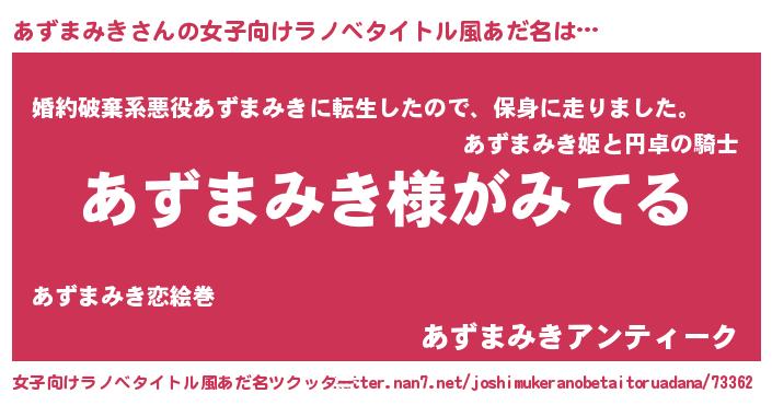 | 胡散臭い通販商品みたいなあだ名 | 『全米が絶賛したサプリメント…その名も「あずまみき」』 |