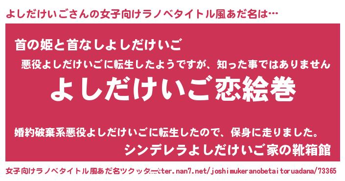 | 男性向けラノベタイトル風あだ名 | 『ノーゲーム・ノーヨシダケイゴ』 |