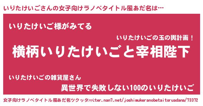 | 男性向けラノベタイトル風あだ名 | 『いりたけいごに滅ぼされるだけの簡単なお仕事です』 |