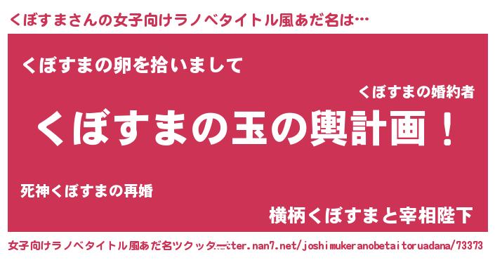 | 男性向けラノベタイトル風あだ名 | 『くぼすま~年齢イコール彼女いない歴の魔法使い~』 |