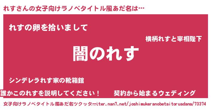 | 男性向けラノベタイトル風あだ名 | 『Re:れすから始める異世界生活』 |