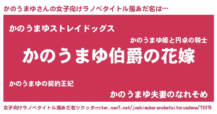 | ファンタジー風あだ名 | 『エターナルカノウマユー』『ゼカノトゥ』 |