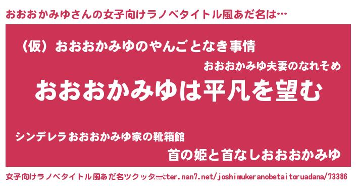 | 男性向けラノベタイトル風あだ名 | 『ダンジョンにおおおかみゆを求めるのは間違っているだろうか』 |