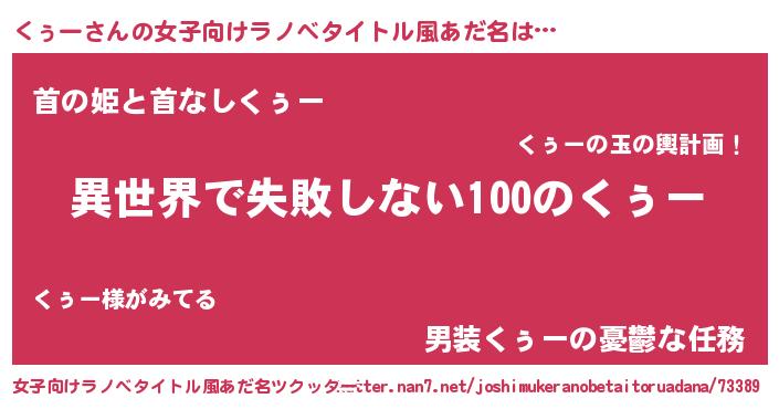| 胡散臭い通販商品みたいなあだ名 | 『絶対に幸福をもたらす水素水…その名も「くぅー」』 |