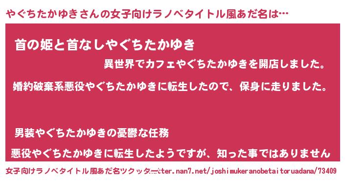 | 男性向けラノベタイトル風あだ名 | 『ヤグチタカユキスレイヤー』 |