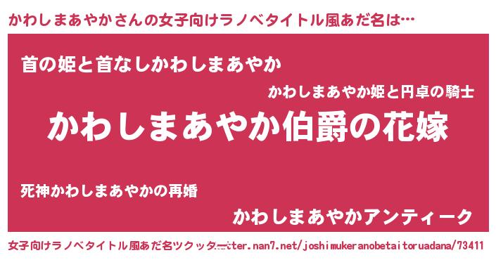 | 男性向けラノベタイトル風あだ名 | 『やはりかわしまあやかの青春ラブコメはまちがっている 』 |
