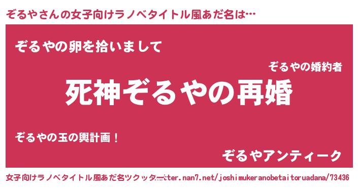 | 男性向けラノベタイトル風あだ名 | 『ノーゲーム・ノーゾルヤ』 |
