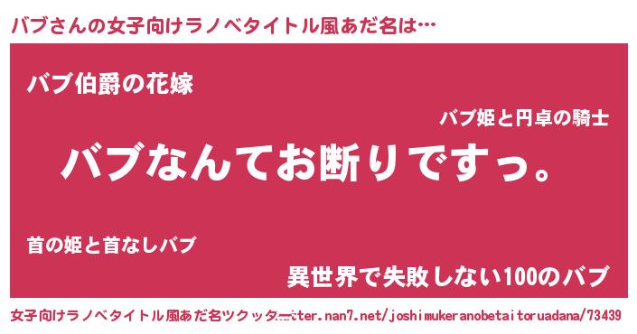 | 男性向けラノベタイトル風あだ名 | 『魔法科高校のバブ』 |