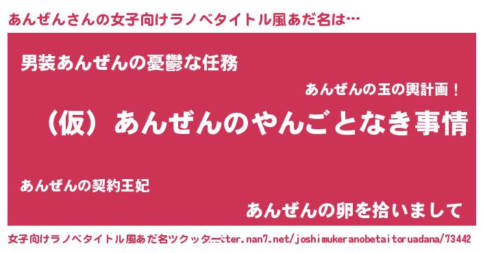 | 胡散臭い通販商品みたいなあだ名 | 『必ず成功するブレスレット…その名も「あんぜん」』 |