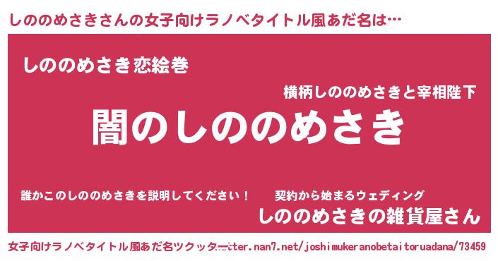 | 男性向けラノベタイトル風あだ名 | 『Re:しののめさきから始める異世界生活』 |