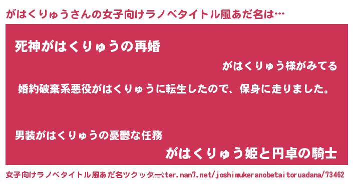 男性向けラノベタイトル風あだ名 | 『ガハクリュウスレイヤー』 |