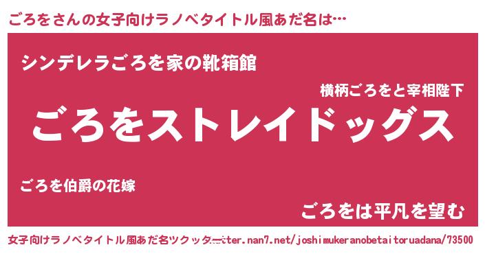 | 男性向けラノベタイトル風あだ名 | 『Re:ごろをから始める異世界生活』 |