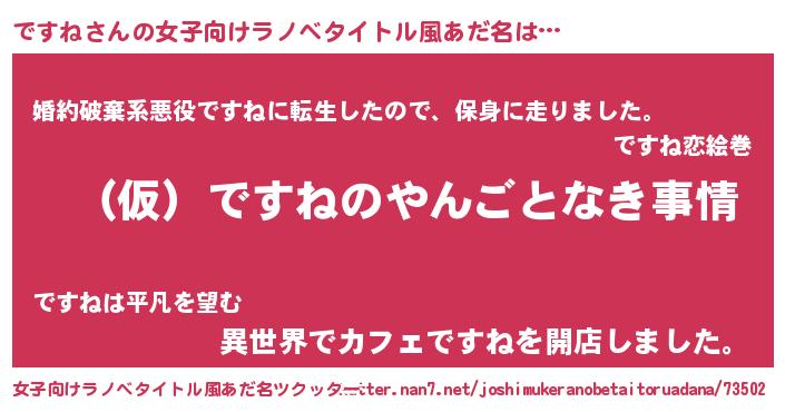 | 胡散臭い通販商品みたいなあだ名 | 『必ず成功する水晶球…その名も「ですね」』 |