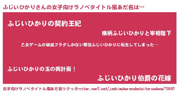 | 男性向けラノベタイトル風あだ名 | 『魔弾の王とふじいひかり』 |