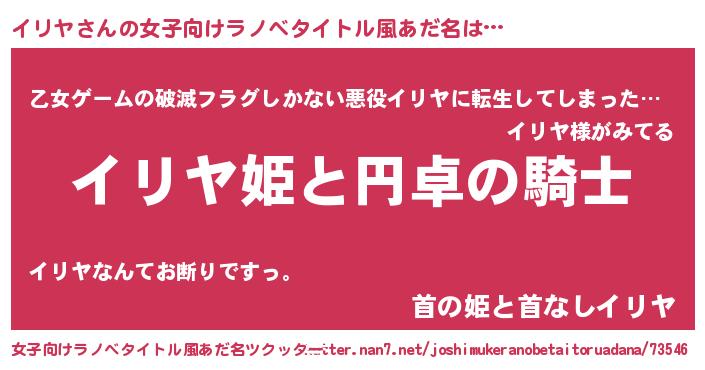 | 男性向けラノベタイトル風あだ名 | 『イリヤの憂鬱』『はたらくイリヤさま!』 |