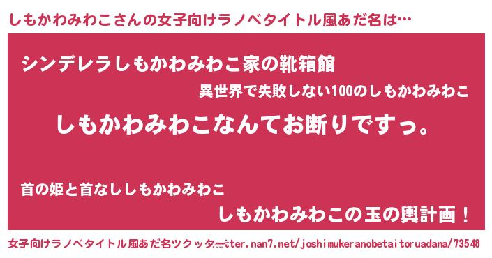 | 意味不明あだ名 | 『自称しもかわみわこ』 |
