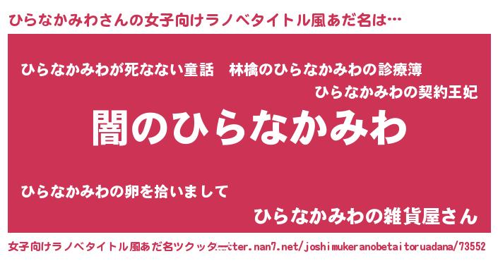 | 意味不明あだ名 | 『自称ひらなかみわ』 |
