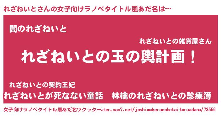 | 男性向けラノベタイトル風あだ名 | 『れざねいと~年齢イコール彼女いない歴の魔法使い~』 |