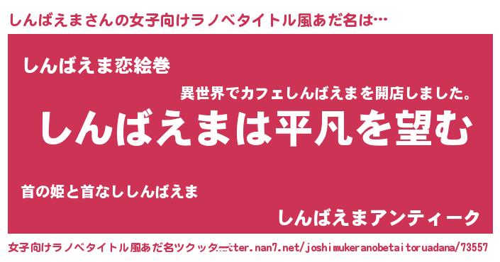 | 男性向けラノベタイトル風あだ名 | 『ダンジョンにしんばえまを求めるのは間違っているだろうか』 |