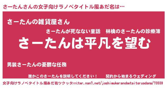 | 男性向けラノベタイトル風あだ名 | 『ダンジョンにさーたんを求めるのは間違っているだろうか』 |