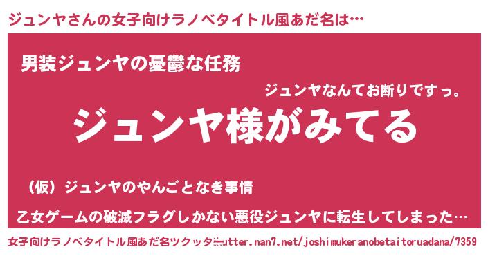 | 胡散臭い通販商品みたいなあだ名 | 『全米が絶賛したサプリメント…その名も「ジュンヤ」』 |