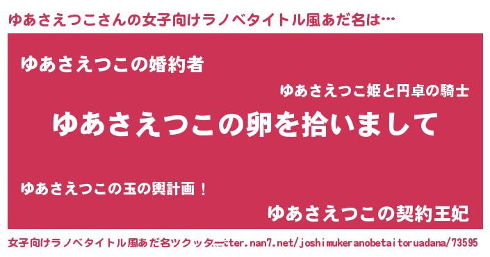 | 男性向けラノベタイトル風あだ名 | 『ダンジョンにゆあさえつこを求めるのは間違っているだろうか』 |