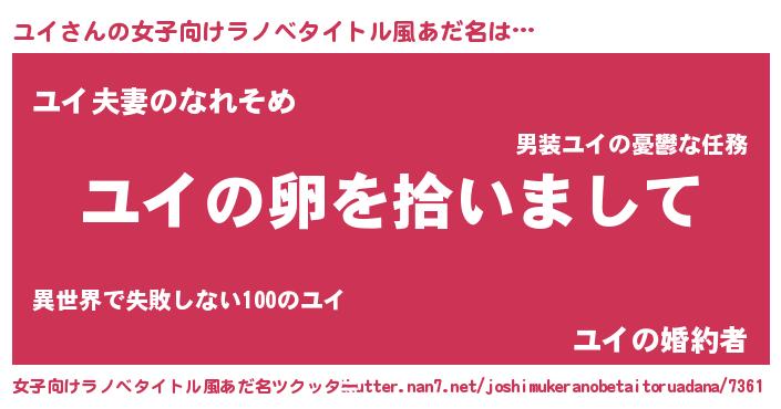 | 男性向けラノベタイトル風あだ名 | 『ユイの嫁は女の子じゃないと思った?』 |