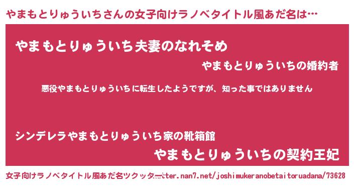 | 意味不明あだ名 | 『住所不定無職やまもとりゅういち(41歳)』 |