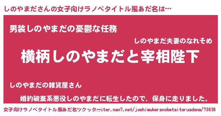 | 男性向けラノベタイトル風あだ名 | 『しのやまだに滅ぼされるだけの簡単なお仕事です』 |