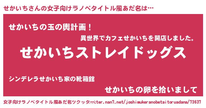| 男性向けラノベタイトル風あだ名 | 『Re:せかいちから始める異世界生活』 |
