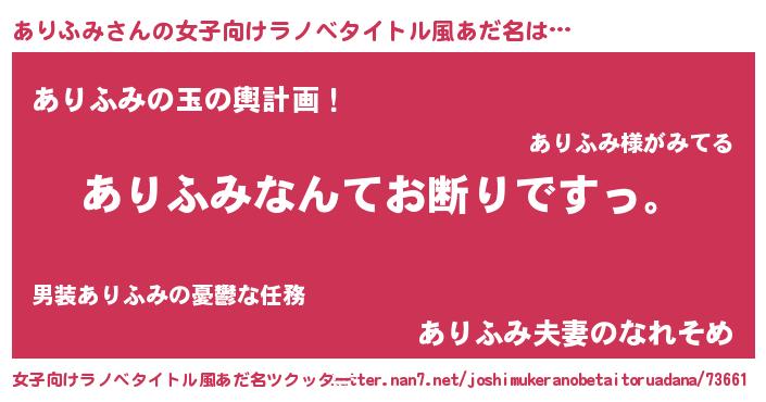 | 意味不明あだ名 | 『自称ありふみ』『ニラ科ありふみ属』 |
