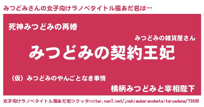 | ファンタジー風あだ名 | 『ミツディッシュ』『クインミット』 |